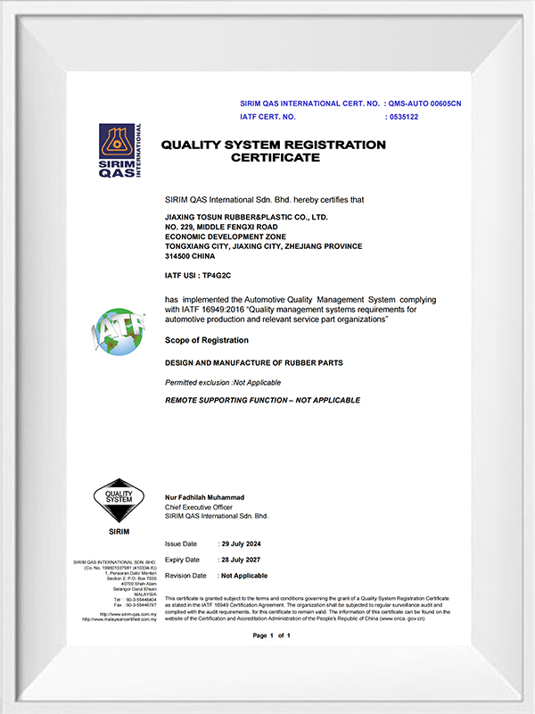 Inom gummiprodukter, fasta profiler gummi extrusioner har blivit en oundgänglig komponent inom många industriella områden med sina unika fysiska egenskaper och breda tillämpningsområden. Som ledande inom detta område tillhandahåller Jiaxing Tosun Rubber & Plastic Co., Ltd., högkvalitativa solida profiler gummitrustioner till globala kunder med sin starka produktionskapacitet och rigorösa kvalitetskontrollsystem. Så, hur säkerställer Jiaxing Tosun produktkvalitet och tillgodoser kundernas olika behov?